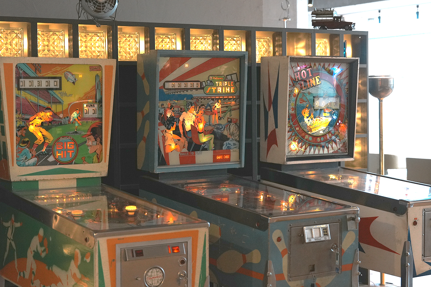 受付からコワーキングスペースのフロアーに入ると、オールドアメリカンなインテリアがたくさんあり、アメリカンバイクやピンポンゲーム、アーティストたちの絵が壁一面に飾られていて、ジュークボックスも置いてある。