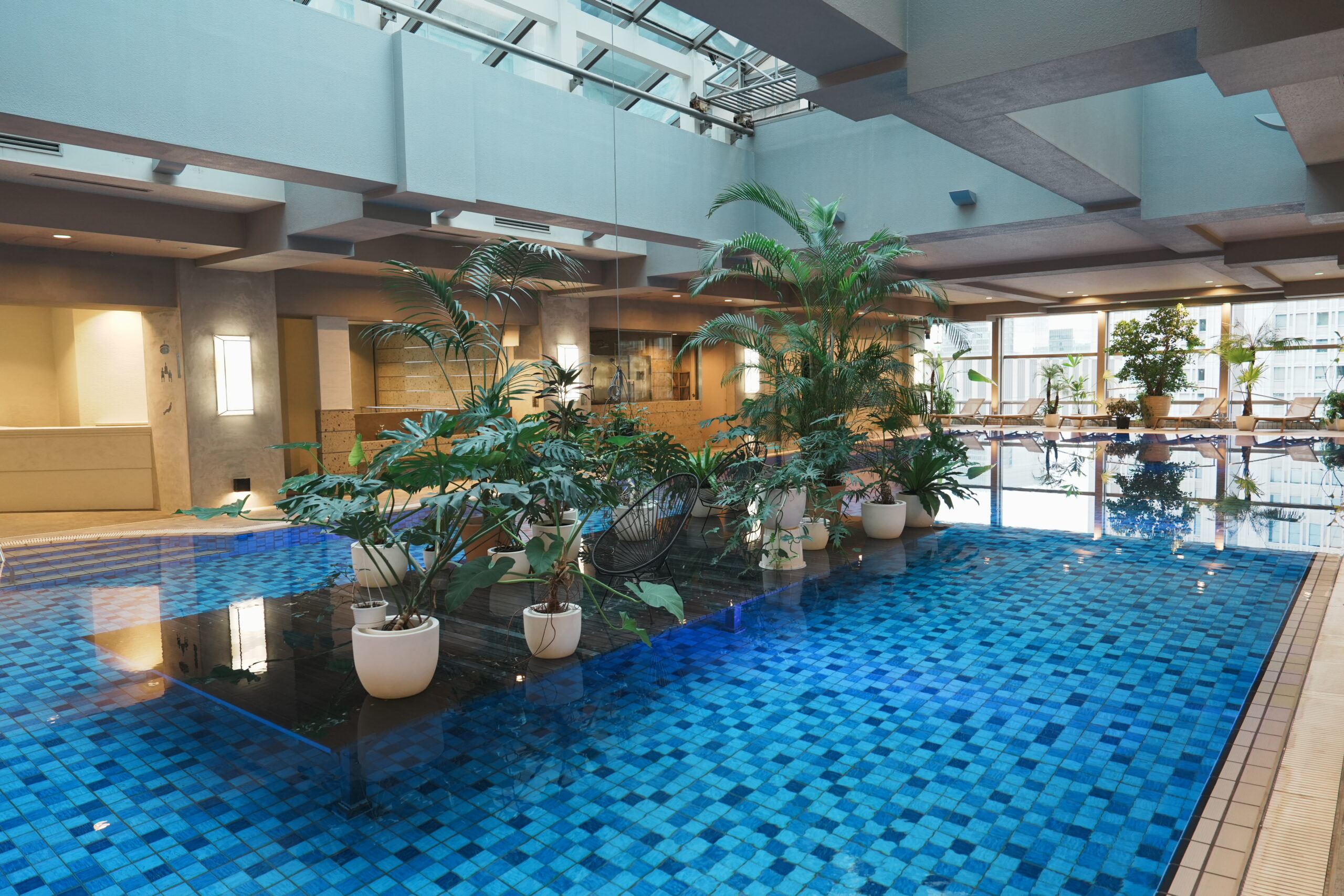 この施設の一番の見所である巨大な水風呂は、25mプールサイズ。